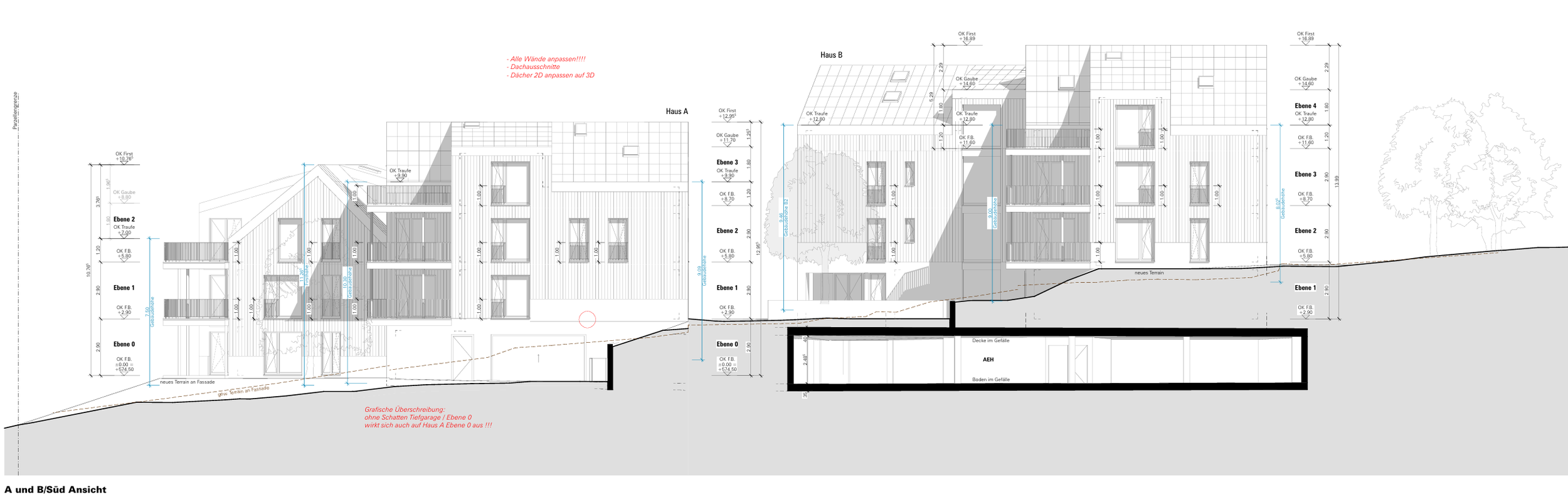 Neubau von zwei Mehrfamilienhäuser mit Autoeinstellhalle. Planung der Heizungs-, Lüftungs-, Sanitär- und Elektroanlagen.