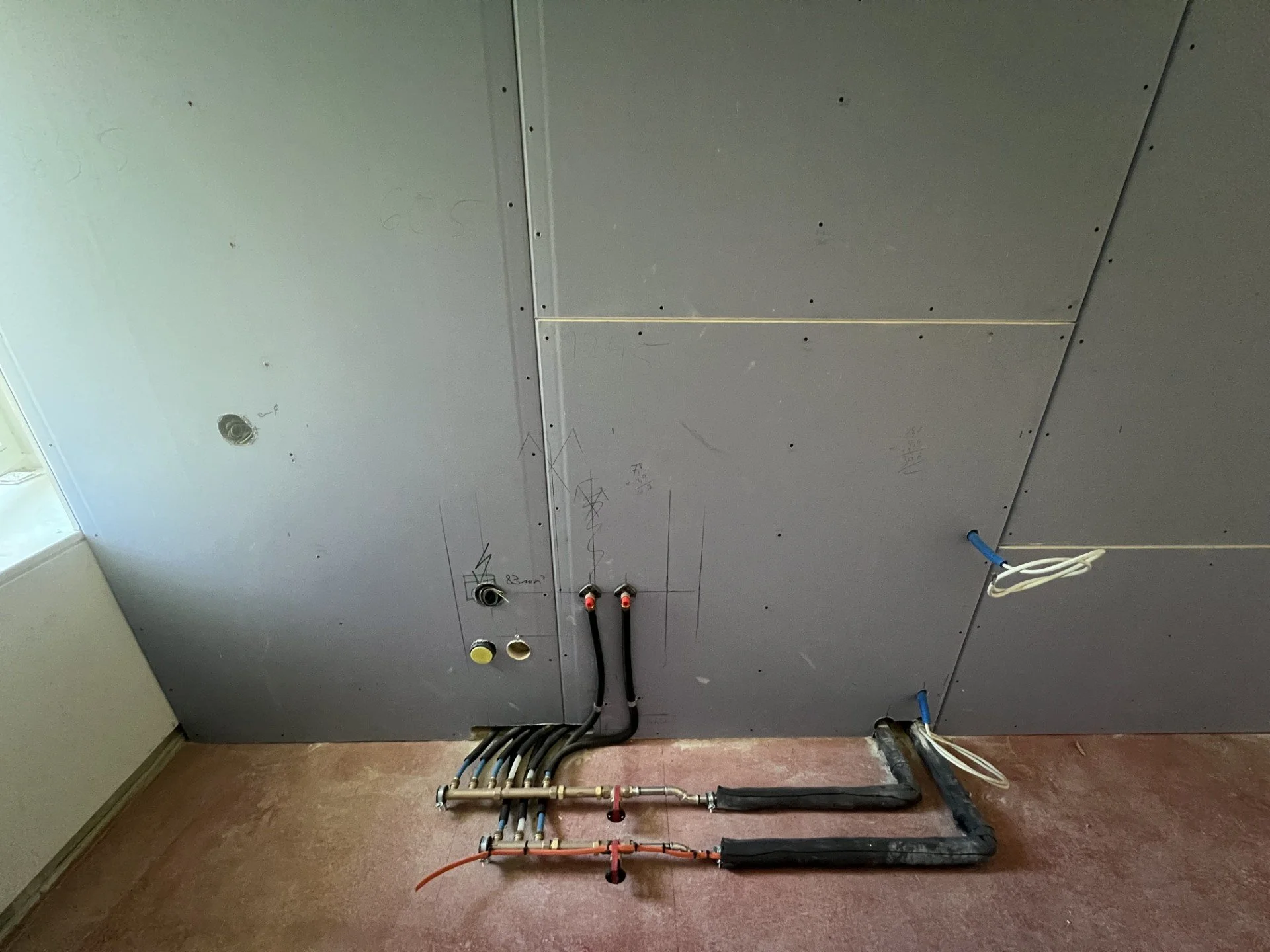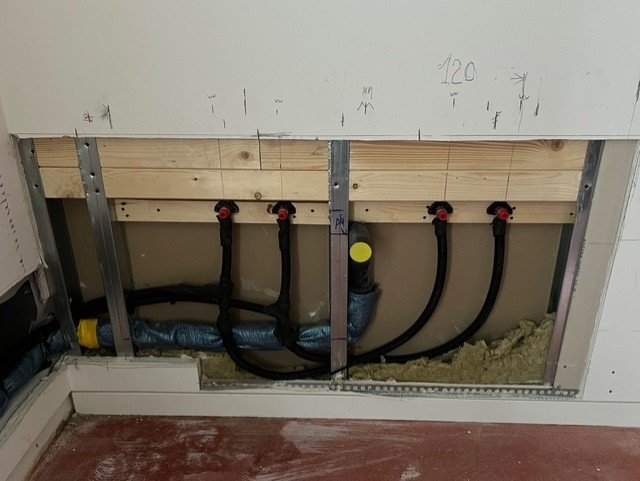 KITA im 2.OG: Einbau einer Kleinküche, einer Waschmaschine mit Tumbler und einer grösseren WC-Anlage in einen bestehenden Raum. Die Kalt- und Warmwasserleitungen und die Schmutzabwasserleitungen wurden ab den bestehenden Leitungen im 1.OG abgenommen.